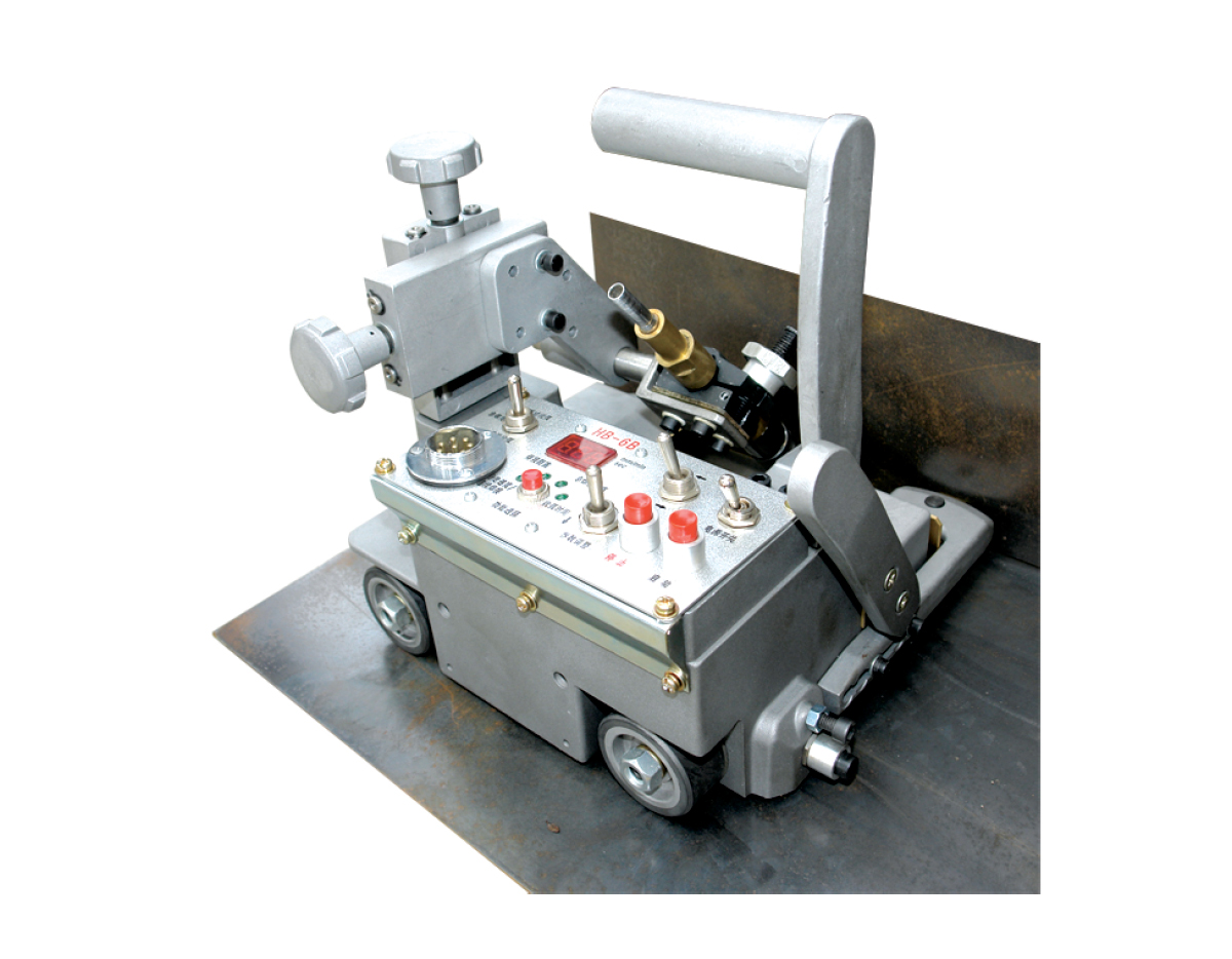 質(zhì)量輕,一個工人即可將其搬出、入筒體人孔;二是焊接小車配置了功能完善的機械式焊縫跟蹤器,保