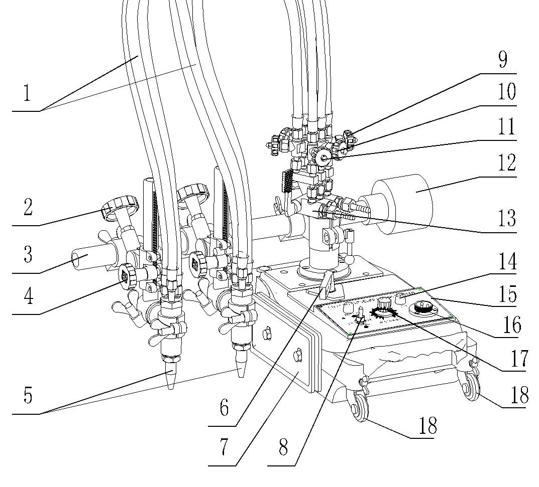 11. 切割氧二通閥:調(diào)節(jié)氣體流量的大小。