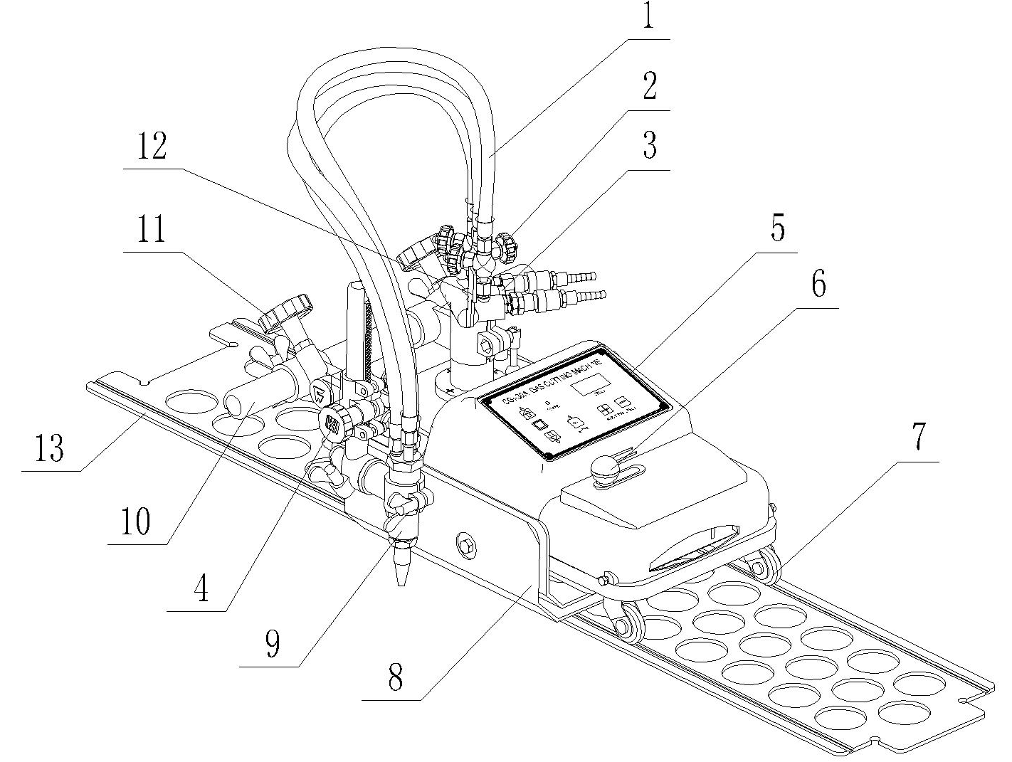 1.軟管:在氣體分配器和割炬之間連接,三條 8. 隔熱板:阻礙熱量向機(jī)器內(nèi)部擴(kuò)散。
