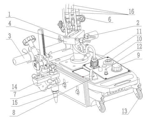 1.點(diǎn)火手柄: 按下該手柄將噴出引導(dǎo)火焰點(diǎn)然割嘴,松開(kāi)手柄 引導(dǎo)火焰自動(dòng)熄滅。 |