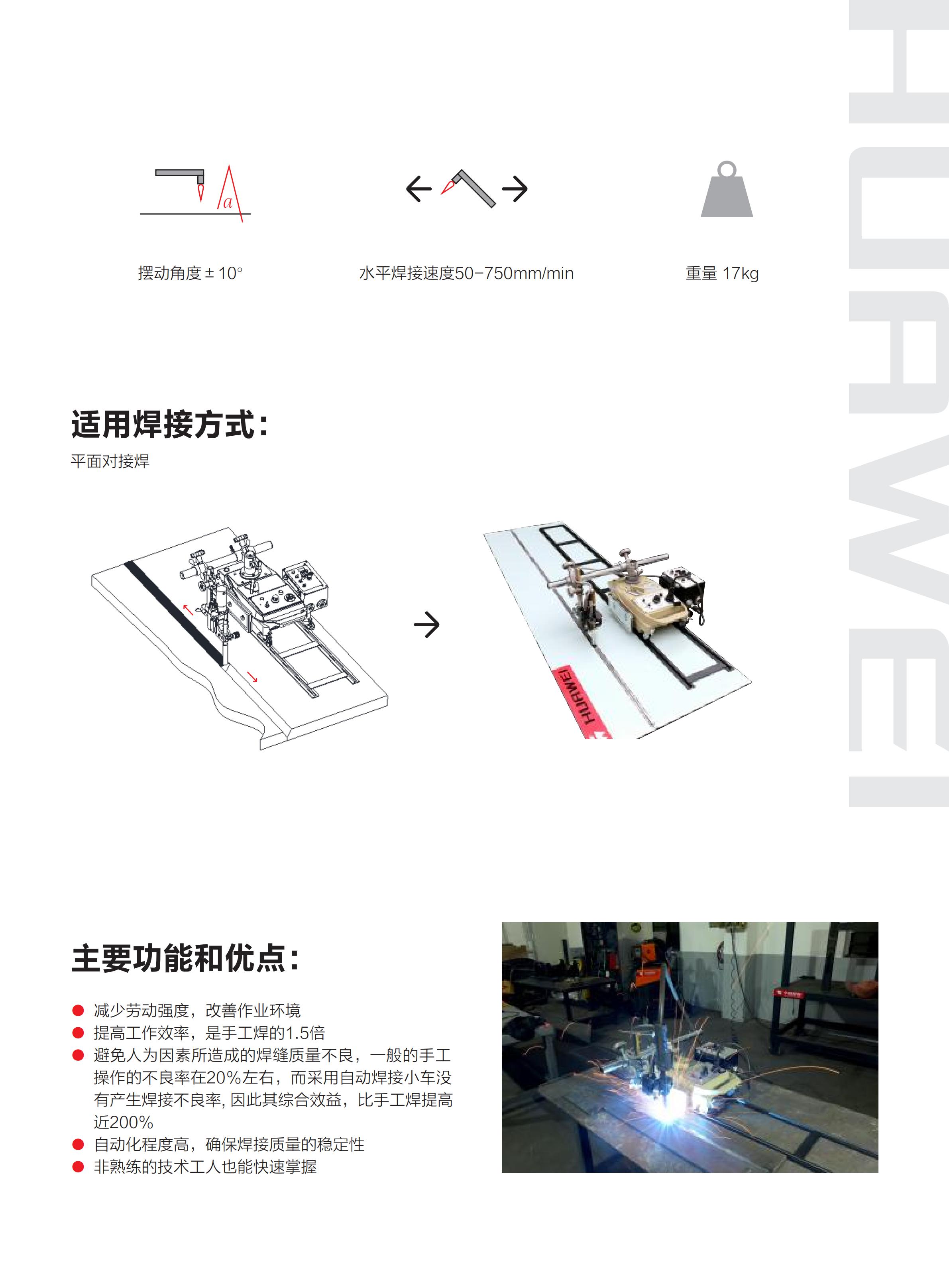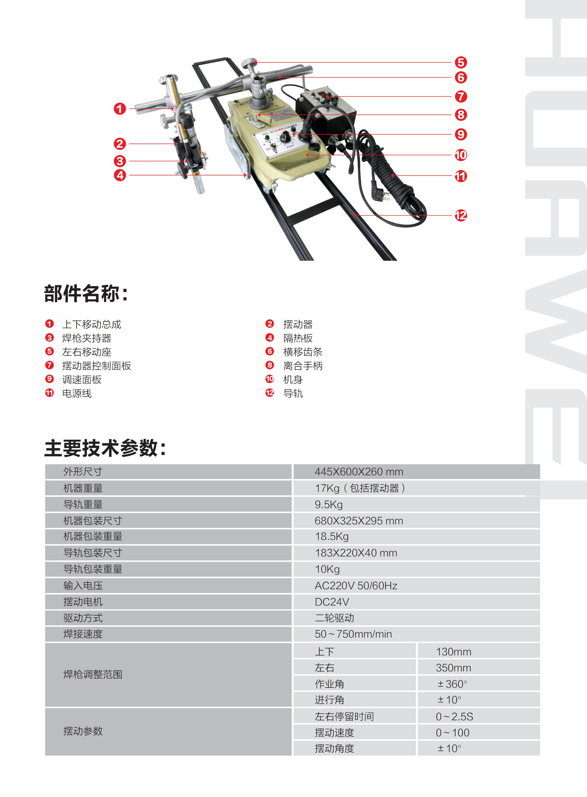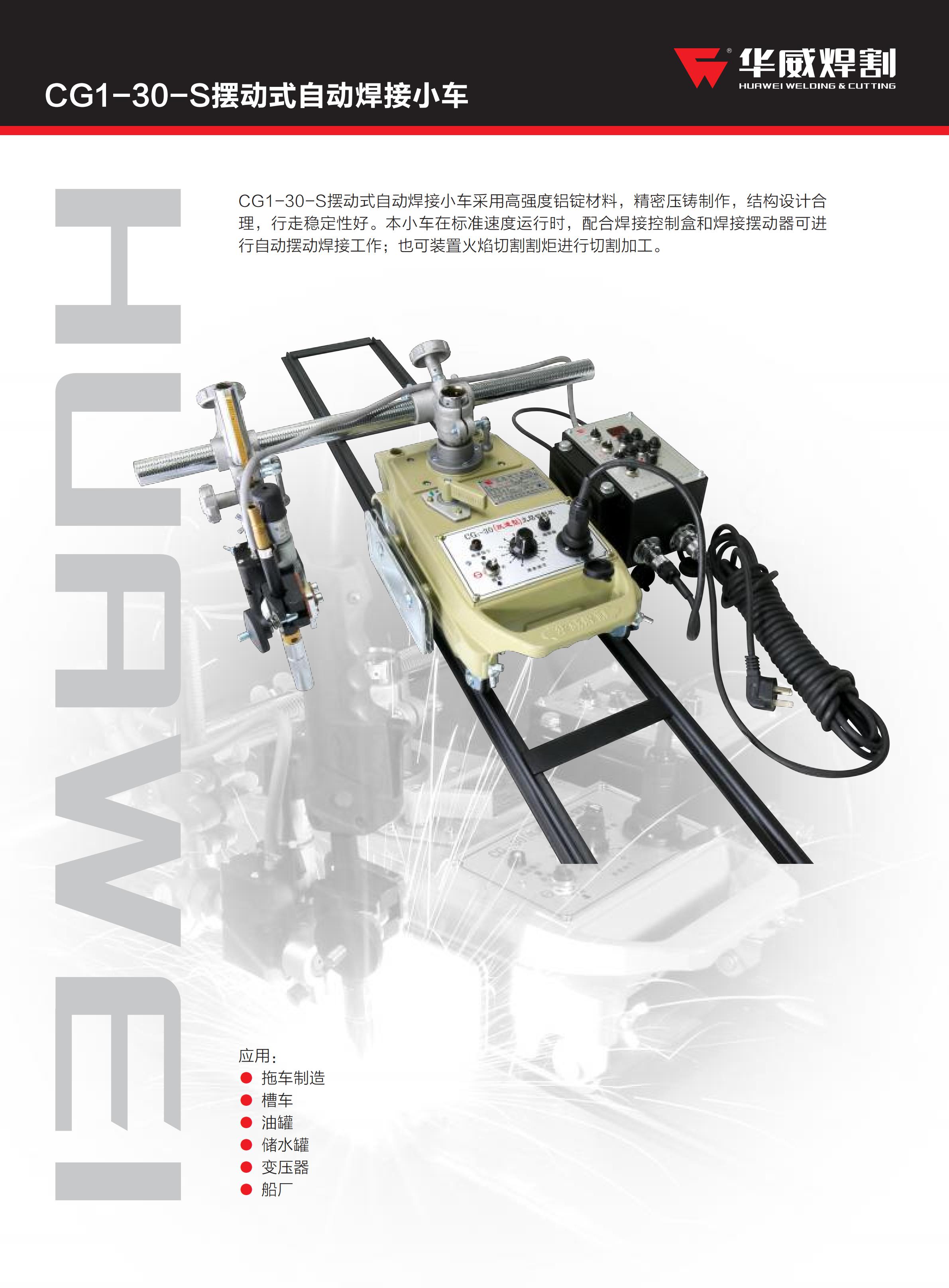 CG1-30-S擺動式自動焊接小車采用高強度鋁錠材料,精密壓鑄制作,結構設計合理,行走穩(wěn)定性好。本小車在標準速度運行時,配合焊接控制盒和焊接擺動器可進行自動擺動焊接工作;也可裝置火焰切割割炬進行切割加工。