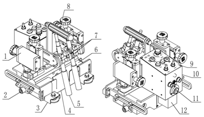 1) 焊炬調(diào)整滑塊:起弧點(diǎn)可以利用此裝置進(jìn)行上/下、前/后的調(diào)整,行程各有60mm。