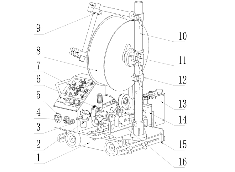 16左右調(diào)節(jié)移動座:是調(diào)節(jié)焊槍位置的裝置,焊接當(dāng)中可以對焊槍進行左右距離的調(diào)節(jié)。