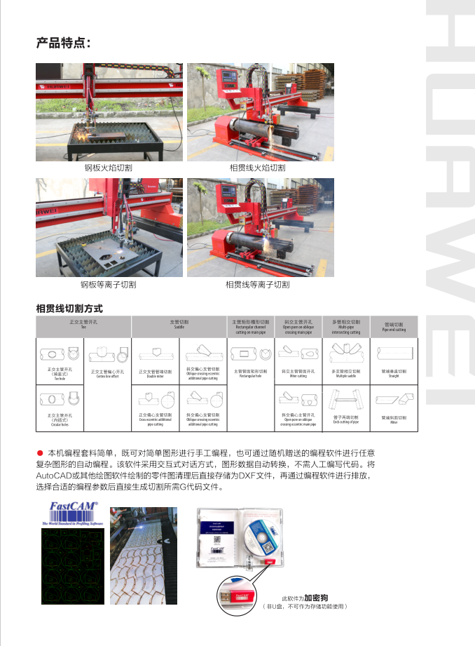 HNC-3000XG龍門式數(shù)控管板切割機是一種數(shù)字程序控制的現(xiàn)代化切割設備,除可以對各種金屬材料進行任意平面圖形切割,同時可以將圓管截斷,在圓管上切割各種形狀及相貫線的切割操作 ,它還具有自動化程度高、切割精度高、材料利用率高、生產效率高等特點。隨著機械電子技術和計算機技術的進步,數(shù)控切割機以其良好的人機對話操作界面、強大的輔助支持功能以及相對很低的設備投資,正被越來越多的企業(yè)所重視,在生產中得到越來越廣泛的應用。