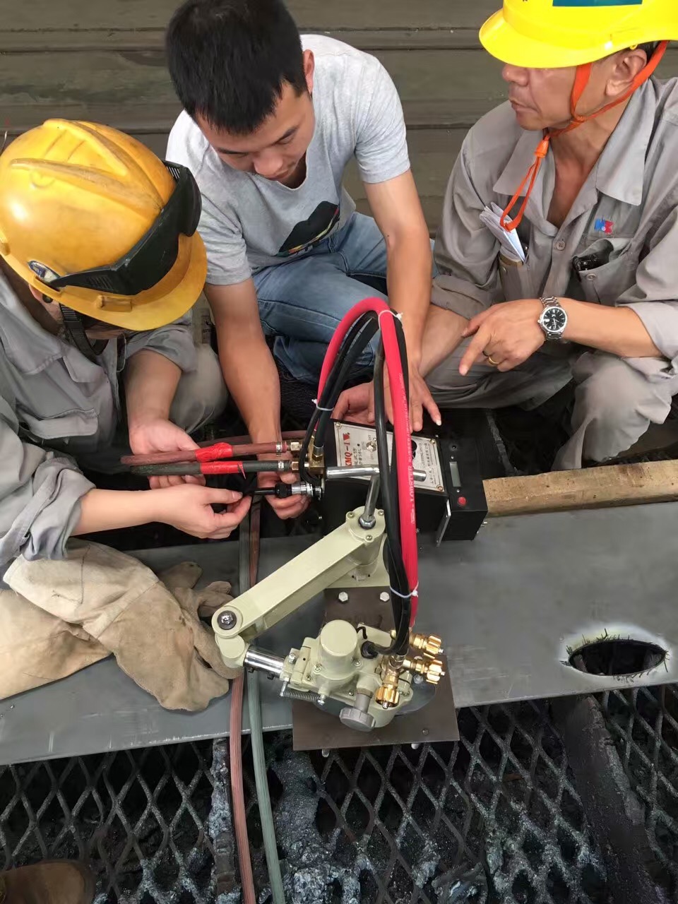華威焊割電池驅(qū)動(dòng)仿形切割機(jī)在上海某造船廠(chǎng)投入使用