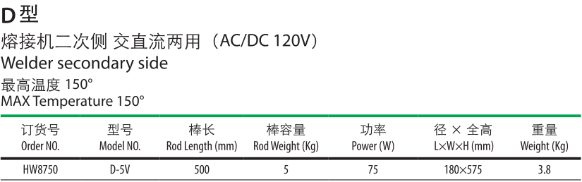 D型熔接機(jī)二次側(cè)交直流兩用。