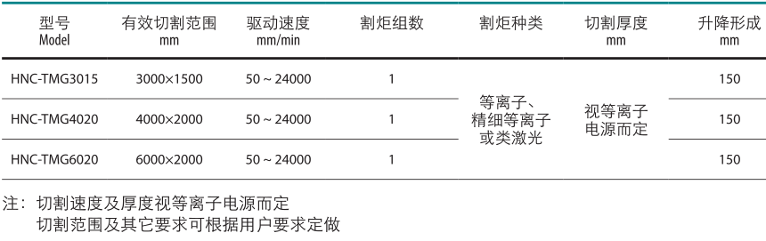 TMG系列是一種高速,精密的等離子或類激光數(shù)控切割機(jī)。使用一體式模塊化結(jié)構(gòu),使安裝迅速,方便??梢约优涑闊煿ぷ髋_(tái),以達(dá)到環(huán)保要求。本機(jī)特別適用于中厚,薄有色金屬板材,不銹鋼,鋁,碳鋼板材的高速切割。