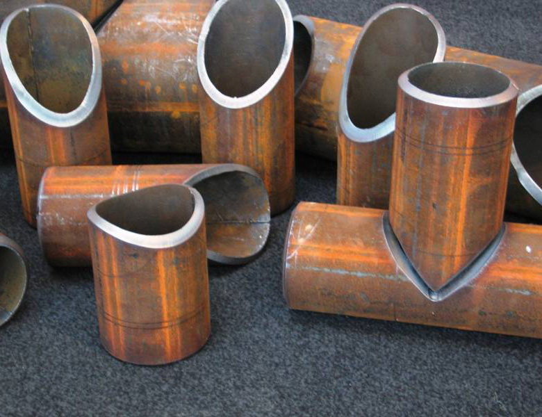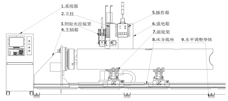 本機是一種對鋼管端部結合處作自動計算和切斷的設備。該機器能廣泛應用于建筑、化工、機械、冶金等行業(yè)的管道結構件的切割加工。這些行業(yè)中有大量的管道結和相貫線孔、相貫線端頭,還有俗稱“蝦米節(jié)”的彎頭,此類加工大多采用制作樣板、劃線、人工放樣、手工切割、人工打磨等落后又繁復的方法來進行。而本機能十分方便的切割此類工件,并且操作人員不需計算與手工編程、只需輸入相互配合的管子的半徑、相交角度等參數(shù),機器就能自動切割出管子的相貫線、相貫孔、以及焊接坡口。